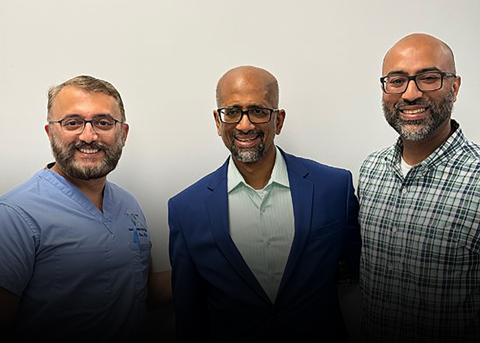From left to right: Dr. Sid Rao, Found of Embolix & VSNC, Dr. Arvinda Nanjundappa, Director of Peripheral Interventions at Cleveland Clinic, OH and Amer Iqbal COO. GAE Training Course.